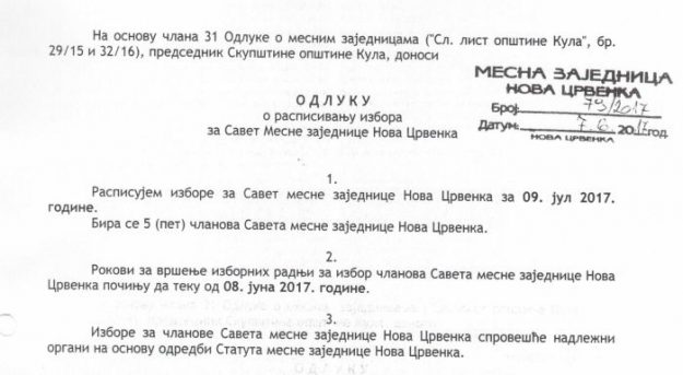 Одлука о расписивању изобра за Савет месне заједнице Нова Црвенка
